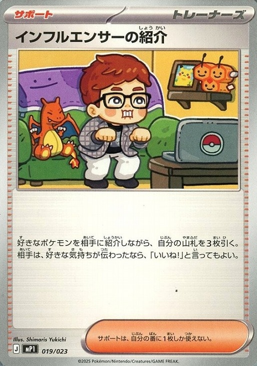 好きなポケモンを相手に紹介しながら、自分の山札を3枚引く。相手は、好きな気持ちが伝わったなら、「いいね!」と言ってもよい。