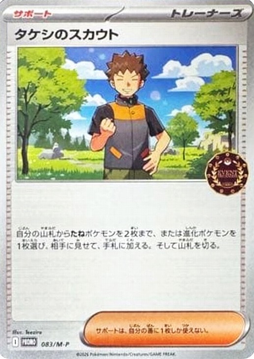自分の山札からたねポケモンを2枚まで、または進化ポケモンを1枚選び、相手に見せて、手札に加える。そして山札を切る。