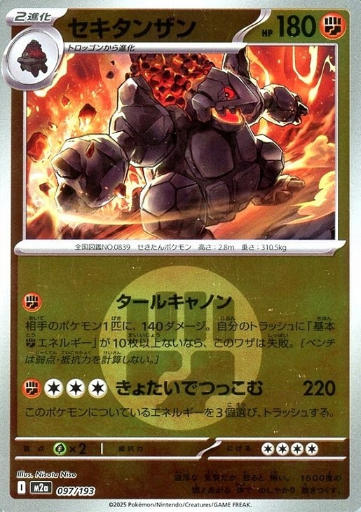 相手のポケモン1匹に、140ダメージ。自分のトラッシュに「基本闘エネルギー」が10枚以上ないなら、このワザは失敗。[ベンチは弱点・抵抗力を計算しない。]