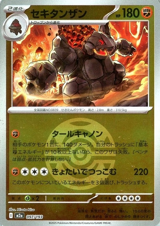 相手のポケモン1匹に、140ダメージ。自分のトラッシュに「基本闘エネルギー」が10枚以上ないなら、このワザは失敗。[ベンチは弱点・抵抗力を計算しない。]