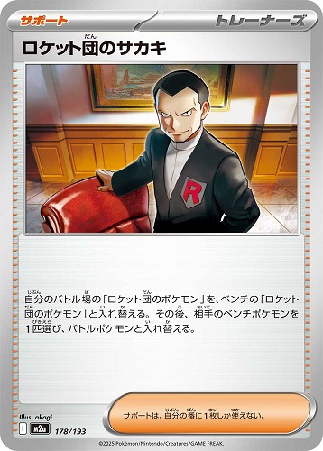 自分のバトル場の「ロケット団のポケモン」を、ベンチの「ロケット団のポケモン」と入れ替える。その後、相手のベンチポケモンを1匹選び、バトルポケモンと入れ替える。