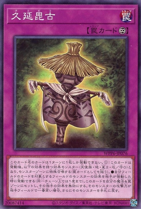 このカード名のカードは1ターンに1枚しか発動できない。①:このカードは発動後、以下の効果を持つ効果モンスター(天使族・地・星2・攻/守0)となり、モンスターゾーンに特殊召喚する(罠カードとしても扱う)。●自分フィールドのカードを対象とするフィールドのモンスターの効果を相手が発動した時に発動できる(同一チェーン上では1度まで)。このカードを自分の魔法&罠ゾーンにセットし、その相手の効果を無効にする。そのモンスターの攻撃力が相手フィールドで一番高い場合、さらにそのモンスターを手札に戻す。