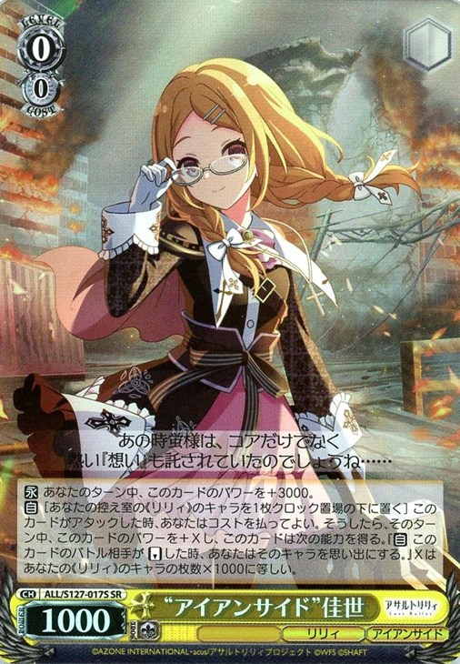 【自】[あなたの控え室の《リリィ》のキャラを1枚クロック置場の下に置く] このカードがアタックした時、あなたはコストを払ってよい。そうしたら、そのターン中、このカードのパワーを+Xし、このカードは次の能力を得る。『【自】 このカードのバトル相手が【リバース】した時、あなたはそのキャラを思い出にする。』Xはあなたの《リリィ》のキャラの枚数×1000に等しい。