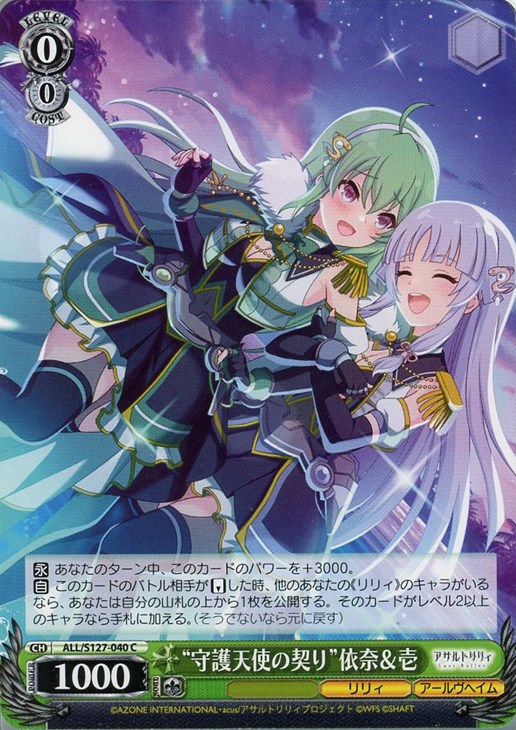 【自】 このカードのバトル相手が【リバース】した時、他のあなたの《リリィ》のキャラがいるなら、あなたは自分の山札の上から1枚を公開する。そのカードがレベル2以上のキャラなら手札に加える。(そうでないなら元に戻す)