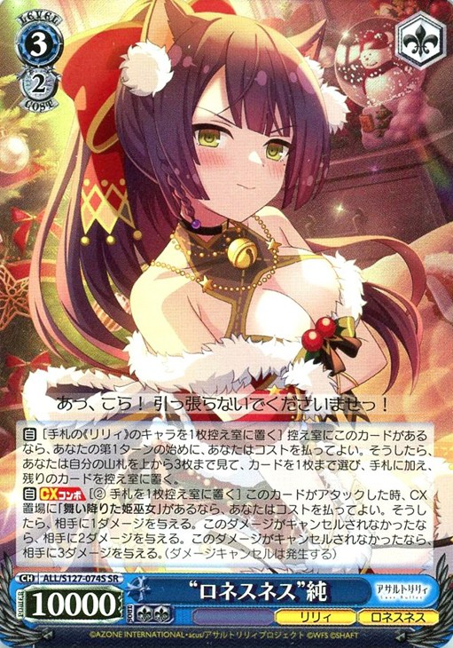 【自】【CXコンボ】[(2) 手札を1枚控え室に置く] このカードがアタックした時、CX置場に「舞い降りた姫巫女」があるなら、あなたはコストを払ってよい。そうしたら、相手に1ダメージを与える。このダメージがキャンセルされなかったなら、相手に2ダメージを与える。このダメージがキャンセルされなかったなら、相手に3ダメージを与える。(ダメージキャンセルは発生する)