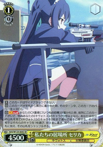 【自】【CXコンボ】 あなたのCX置場に「いつもの日常」が置かれた時、前列にこのカードがいて、他のあなたの《キヴォトス》のキャラが2枚以上なら、あなたは自分の山札を見て《キヴォトス》のキャラを2枚まで選んで相手に見せる。その後、相手はそれらのキャラを1枚選び、控え室に置き、残りのカードをあなたの手札に加え、その山札をシャッフルする。