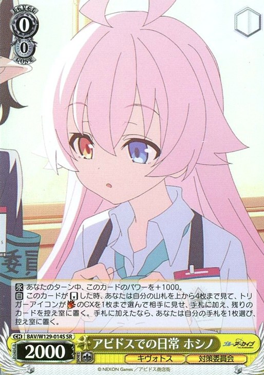 【自】 このカードが【リバース】した時、あなたは自分の山札を上から4枚まで見て、トリガーアイコンがショットのCXを1枚まで選んで相手に見せ、手札に加え、残りのカードを控え室に置く。手札に加えたなら、あなたは自分の手札を1枚選び、控え室に置く。