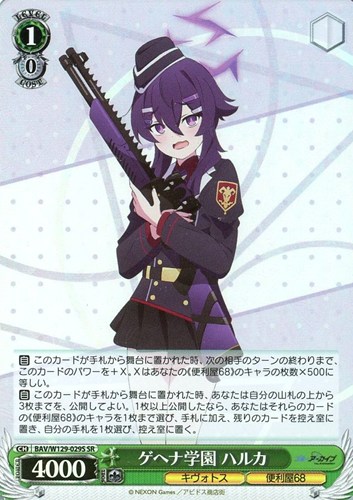 【自】 このカードが手札から舞台に置かれた時、あなたは自分の山札の上から3枚までを、公開してよい。1枚以上公開したなら、あなたはそれらのカードの《便利屋68》のキャラを1枚まで選び、手札に加え、残りのカードを控え室に置き、自分の手札を1枚選び、控え室に置く。