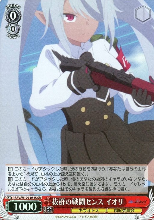 【自】 このカードがアタックした時、他のあなたの後列のキャラがいないなら、あなたは自分の山札の上から1枚を、控え室に置いてよい。そのカードがレベル0以下のキャラなら、あなたはそのキャラを後列の好きな枠に置く。