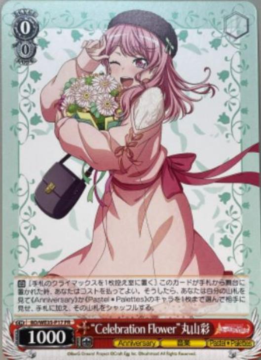 【自】[手札のクライマックスを1枚控え室に置く] このカードが手札から舞台に置かれた時、あなたはコストを払ってよい。そうしたら、あなたは自分の山札を見て《Anniversary》か《Pastel*Palettes》のキャラを1枚まで選んで相手に見せ、手札に加え、その山札をシャッフルする。