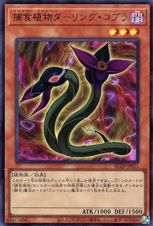 ①:このカードが「捕食植物」モンスターの効果で特殊召喚した場合に発動できる。デッキから「融合」魔法カードか「フュージョン」魔法カード1枚を手札に加える。