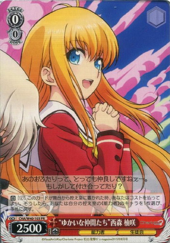 - 【自】 [②] このカードが舞台から控え室に置かれた時、あなたはコストを払ってよい。そうしたら、あなたは自分の控え室の《能力者》のキャラを選び、手札に戻す。
