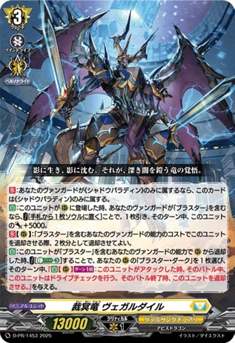 【自】:このユニットが「ブラスター」を含むあなたのヴァンガードの能力で(R)から退却した時、【コスト】[【エネルギーブラスト】(3)]することで、あなたの(R)の「ブラスター・ダーク」を1枚選び、そのターン中、『【自】【(R)】【ターン1回】:このユニットがアタックした時、そのバトル中、このユニットはドライブチェックを行う。そのバトル終了時、このユニットを退却させる。』を与える。