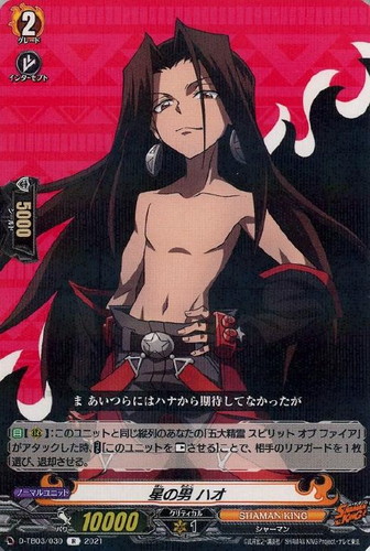 - 【自】【(R)】:このユニットと同じ縦列のあなたの「五大精霊 スピリット オブ ファイア」がアタックした時、【コスト】[このユニットを【レスト】させる]ことで、相手のリアガードを1枚選び、退却させる。