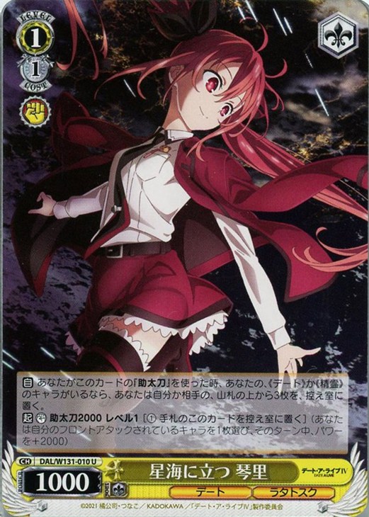 【自】 あなたがこのカードの『助太刀』を使った時、あなたの、《デート》か《精霊》のキャラがいるなら、あなたは自分か相手の、山札の上から3枚を、控え室に置く。