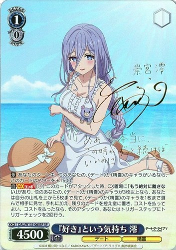 【永】 あなたのターン中、他のあなたの、《デート》か《精霊》のキャラがいるなら、このカードのパワーを+1500。