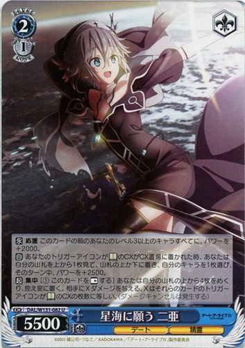 【自】 あなたのトリガーアイコンがドローのCXがCX置場に置かれた時、あなたは自分の山札を上から1枚見て、山札の上か下に置き、自分のキャラを1枚選び、そのターン中、パワーを+2500。