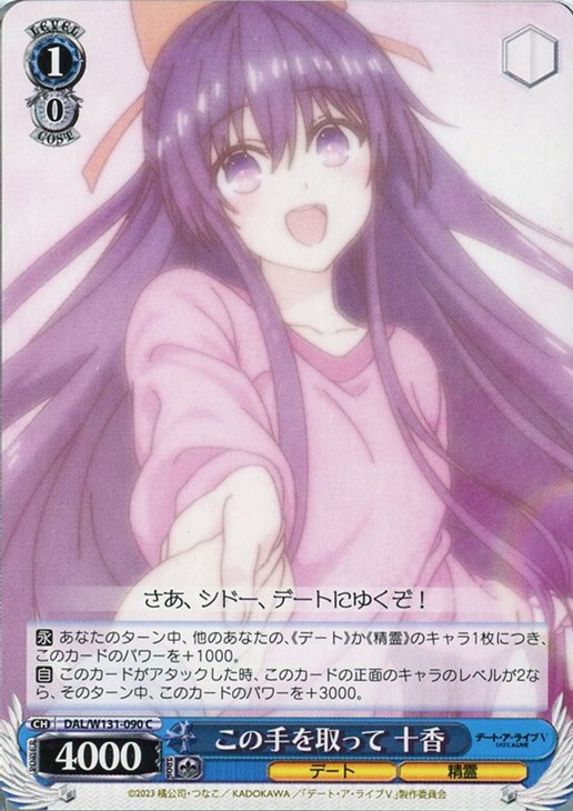 【永】 あなたのターン中、他のあなたの、《デート》か《精霊》のキャラ1枚につき、このカードのパワーを+1000。