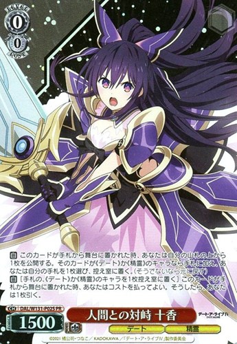 【自】[手札の、《デート》か《精霊》のキャラを1枚控え室に置く] このカードが手札から舞台に置かれた時、あなたはコストを払ってよい。そうしたら、あなたは1枚引く。
