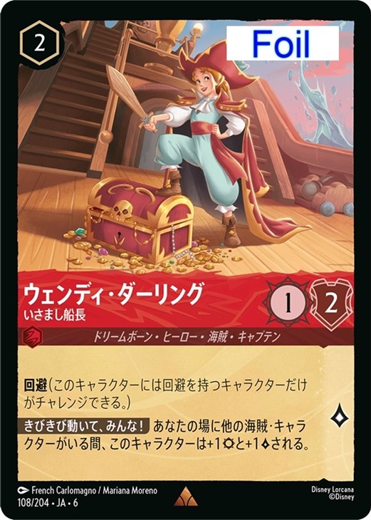 【きびきび動いて、みんな!】 あなたの場に他の海賊・キャラクターがいる間、このキャラクターは+1[攻撃力]と+1[ロア値]される。