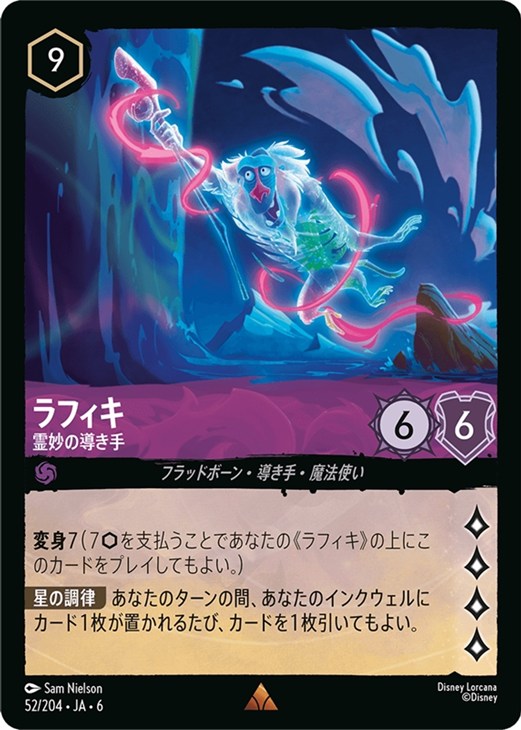 【星の調律】 あなたのターンの間、あなたのインクウェルにカード1枚が置かれるたび、カードを1枚引いてもよい。