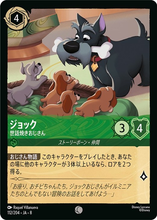 - 【おじさん物語】 このキャラクターをプレイしたとき、あなたの場に他のキャラクターが3体以上いるなら、ロアを2つ得る。