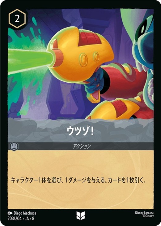 - キャラクター1体を選び、1ダメージを与える。カードを1枚引く。