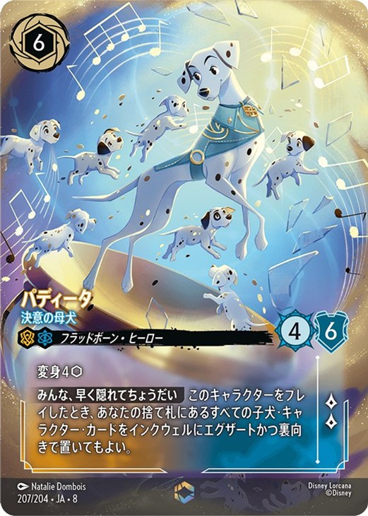 - 変身4[コスト] 【みんな、早く隠れてちょうだい】 このキャラクターをプレイしたとき、あなたの捨て札にあるすべての子犬・キャラクター・カードをインクウェルにエグザートかつ裏向きで置いてもよい。