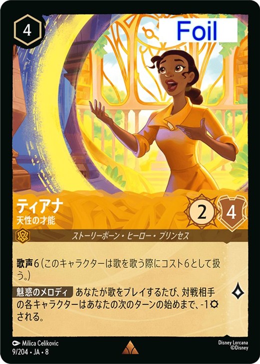 【魅惑のメロディ】 あなたが歌をプレイするたび、対戦相手の各キャラクターはあなたの次のターンの始めまで、-1[攻撃力]される。