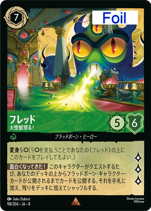 【面白くなってきた!】 このキャラクターがクエストするたび、あなたのデッキの上からフラッドボーン・キャラクター・カードが公開されるまでカードを公開する。それを手札に加え、残りをデッキに加えてシャッフルする。