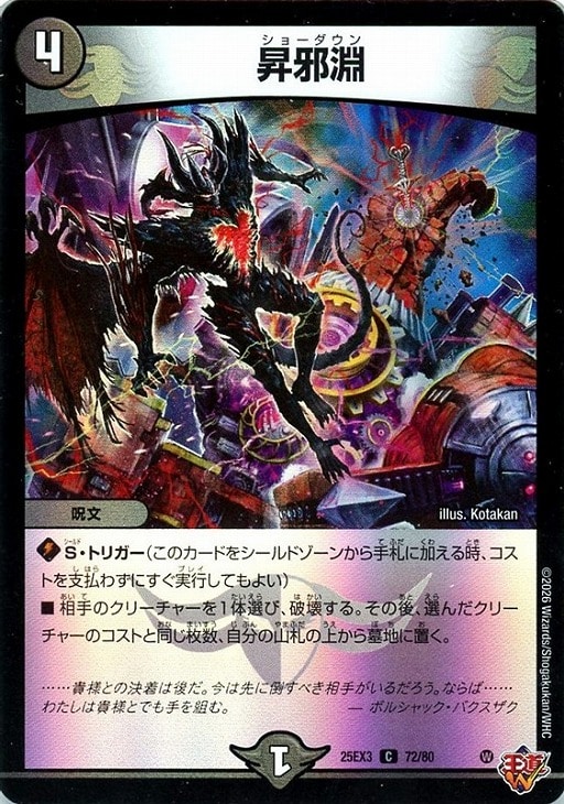 ■相手のクリーチャーを1体選び、破壊する。その後、選んだクリーチャーのコストと同じ枚数、自分の山札の上から墓地に置く。