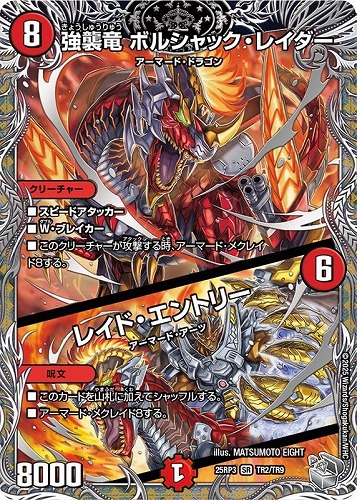 ■このクリーチャーが攻撃する時、アーマード・メクレイド8する。(アーマード・メクレイド8:自分の山札の上から3枚を見る。その中から、コスト8以下のアーマードを1枚、コストを支払わずに使ってもよい。残りを好きな順序で山札の下に置く)