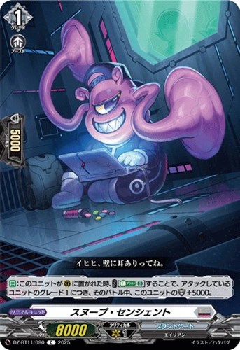 - 【自】:このユニットが(G)に置かれた時、【コスト】[【エネルギーブラスト】(3)]することで、アタックしているユニットのグレード1につき、そのバトル中、このユニットのシールド+5000。