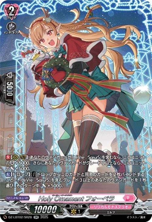 【起】【ドロップ】:【コスト】[ドロップからこのカードと同名のカードを2枚バインドする]ことで、「LeVre?SoeurS」を含むグレード3以上のあなたのヴァンガードを1枚選び、そのターン中、パワー+5000。