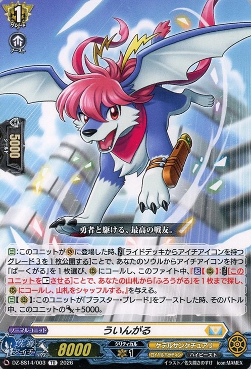 【自】【(R)】:このユニットが「ブラスター・ブレード」をブーストした時、そのバトル中、このユニットのパワー+5000。