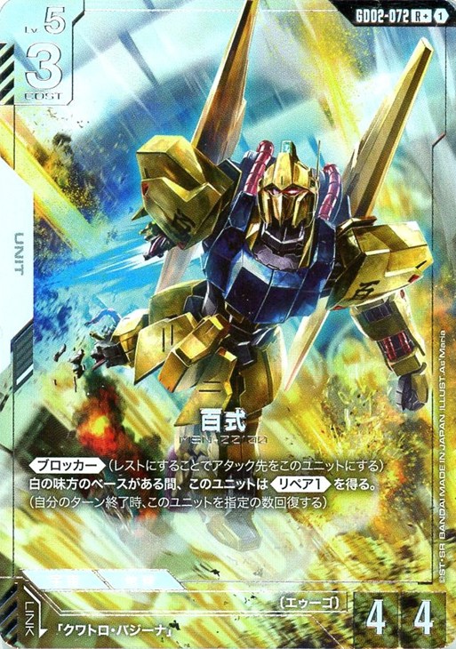 《ブロッカー》(レストにすることでアタック先をこのユニットにする)白の味方のベースがある間、このユニットは《リペア1》を得る。(自分のターン終了時、このユニットを指定の数回復する)