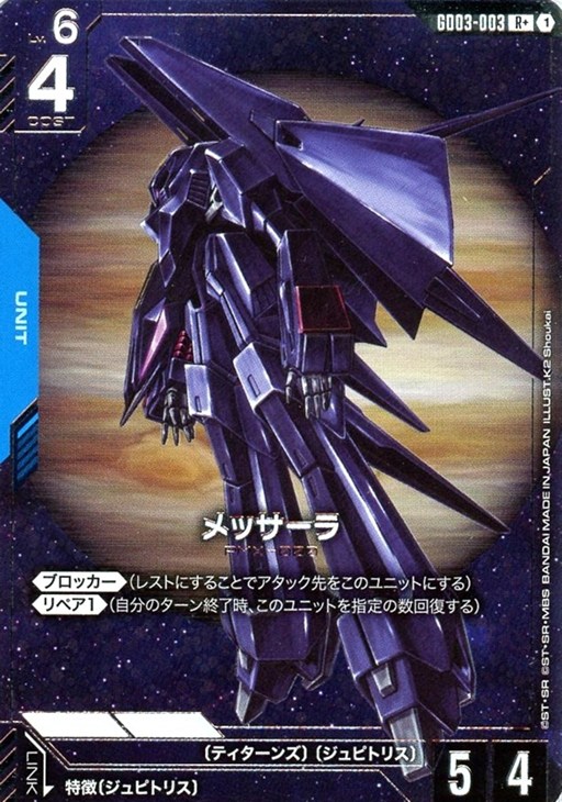 - 《ブロッカー》(レストにすることでアタック先をこのユニットにする)《リペア1》(自分のターン終了時、このユニットを指定の数回復する)