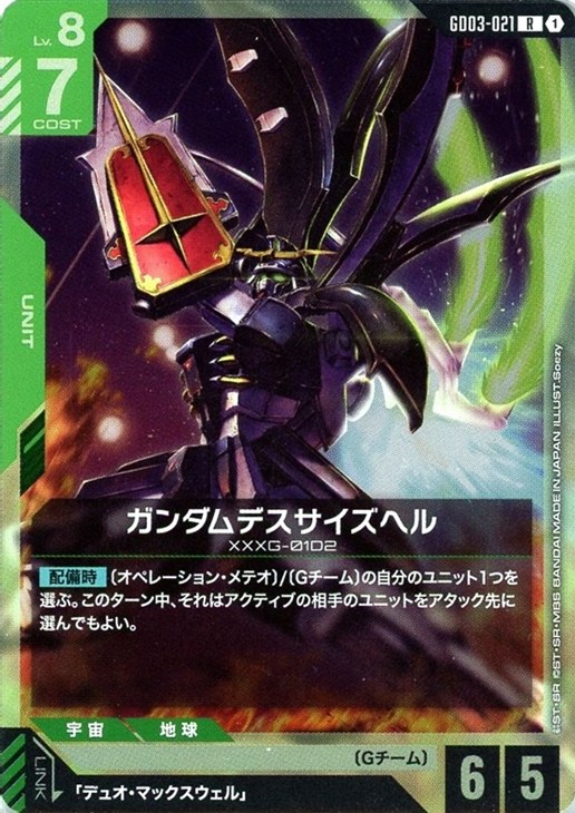 - 【配備時】〔オペレーション・メテオ〕/〔Gチーム〕の自分のユニット1つを選ぶ。このターン中、それはアクティブの相手のユニットをアタック先に選んでもよい。