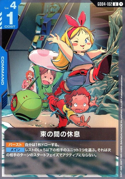 【メイン】レストのLv.5以下の相手のユニット1つを選ぶ。それは次の相手のターンのスタートフェイズでアクティブにならない。