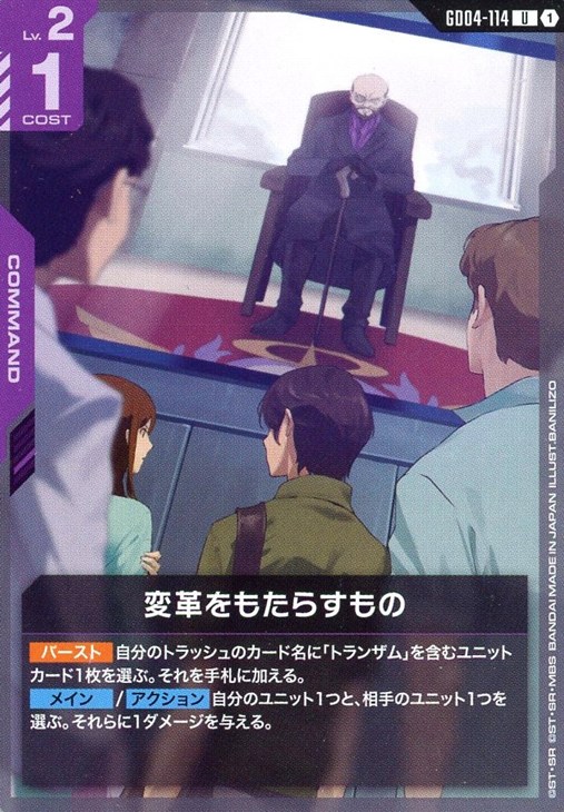 【バースト】自分のトラッシュのカード名に「トランザム」を含むユニットカード1枚を選ぶ。それを手札に加える。