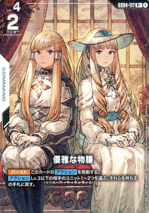 【アクション】Lv.3以下の相手のユニット1~2つを選ぶ。それらを持ち主の手札に戻す。