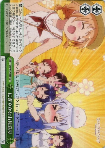 - 【自】 このカードが手札からクライマックス置場に置かれた時、あなたは自分の控え室の緑のカードを1枚まで選び、ストック置場に置き、自分のキャラすべてに、そのターン中、ソウルを+1。