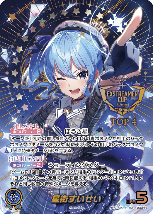 [ターンに1回]この推しホロメンか自分の青ホロメンが相手のバックホロメンにダメージを与えた時に使える:その相手のバックホロメン1人に特殊ダメージ50を与える。