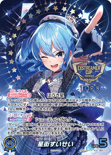 [ターンに1回]この推しホロメンか自分の青ホロメンが相手のバックホロメンにダメージを与えた時に使える:その相手のバックホロメン1人に特殊ダメージ50を与える。