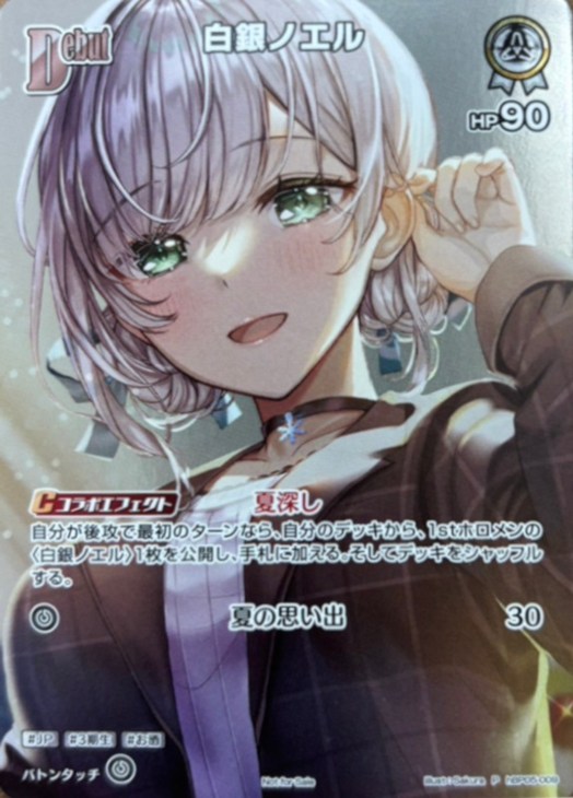 自分が後攻で最初のターンなら、自分のデッキから、1stホロメンの〈白銀ノエル〉1枚を公開し、手札に加える。そしてデッキをシャッフルする。