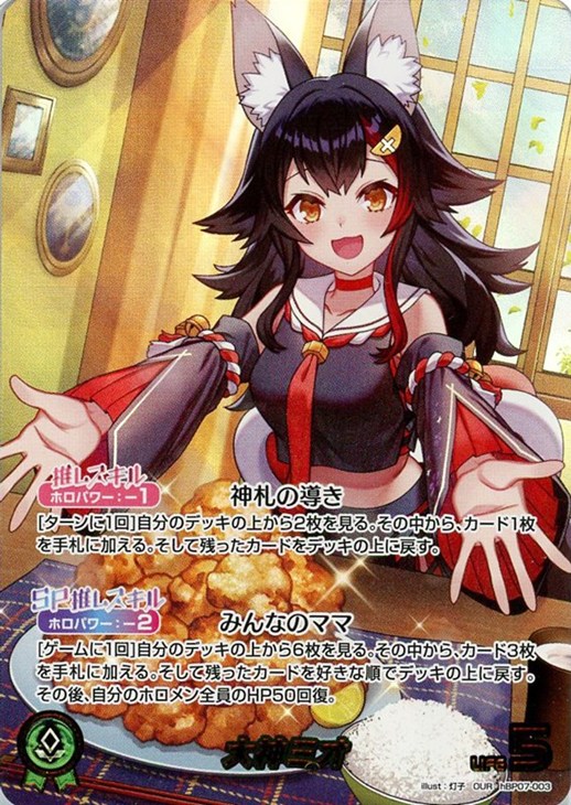 [ゲームに1回]自分のデッキの上から6枚を見る。その中から、カード3枚を手札に加える。そして残ったカードを好きな順でデッキの上に戻す。その後、自分のホロメン全員のHP50回復。
