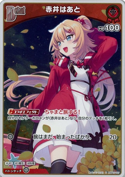 自分のセンターホロメンが〈赤井はあと〉なら、自分のデッキを1枚引く。