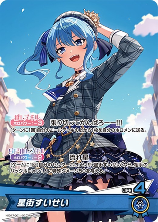 [ゲームに1回]自分のセンターホロメンが〈星街すいせい〉なら、相手のバックホロメン1人に特殊ダメージ50を与える。