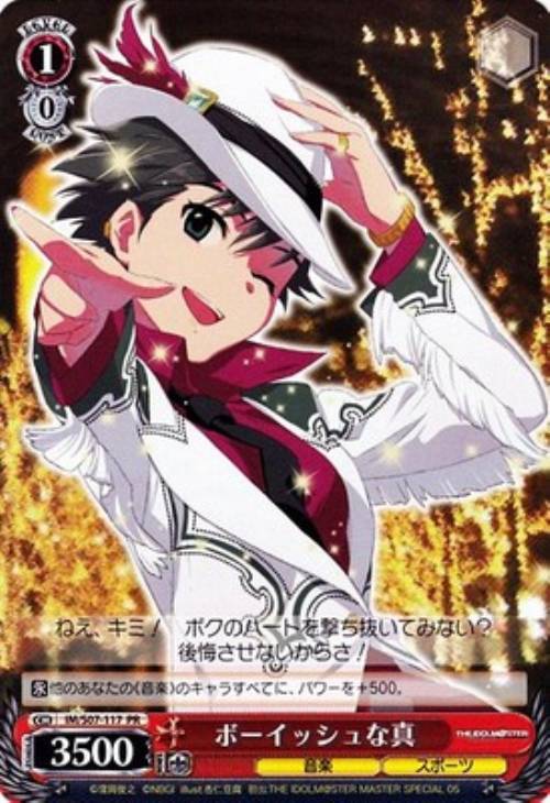 - 【永】 他のあなたの《音楽》のキャラすべてに、パワーを+500。フレーバー:ねえ、キミ! ボクのハートを撃ち抜いてみない? 後悔させないからさ!