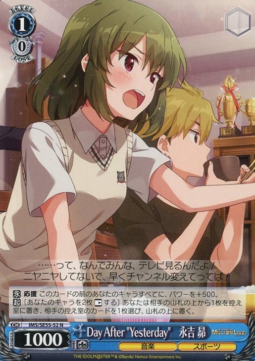 【永】 応援 このカードの前のあなたのキャラすべてに、パワーを+500。